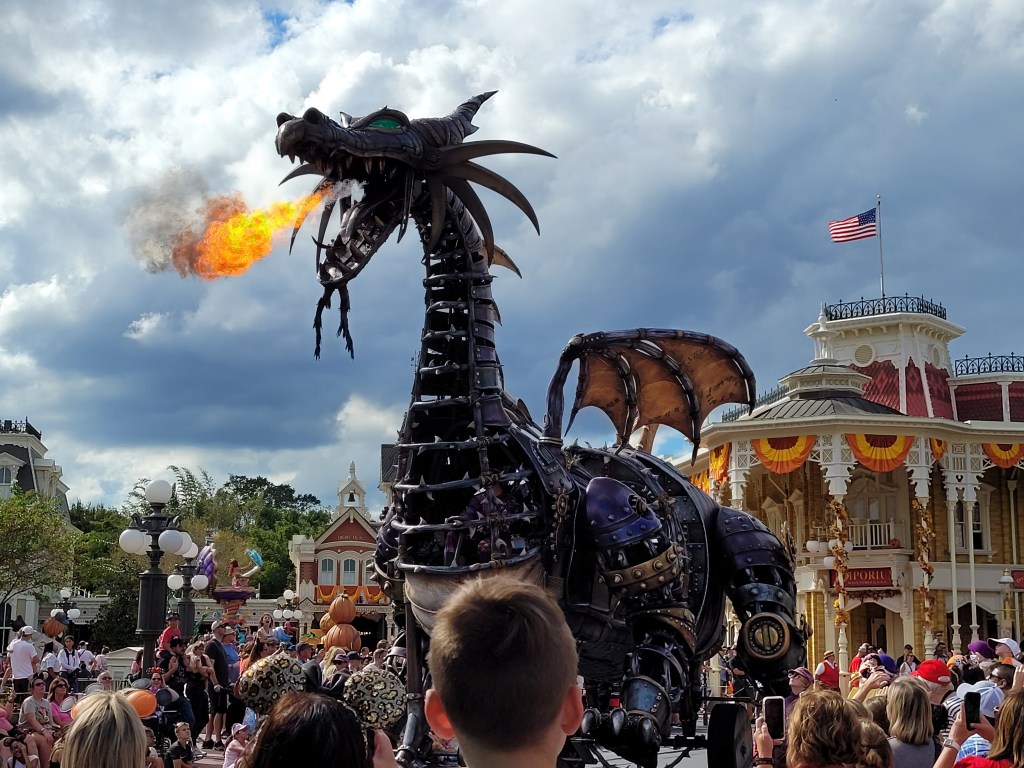 We arrived just in time for one of the regular parades going through, full of actors and dancers prancing around as different Disney characters, and even a fire-breathing Maleficent dragon that I thought was pretty impressive…until finding out months later that the one in Disney Land was a potential death trap, and am now very happy we didn’t go out of our way to get pictures of her in front of it.